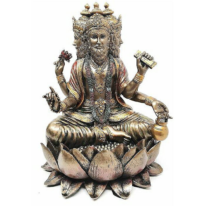 ヒンドゥー教 創造神 蓮の王座に座る ブラフマー神 彫刻 インド宗教神話 仏像 彫像/ Cosmic Soul Hindu Deity Brahma Brahman (輸入品