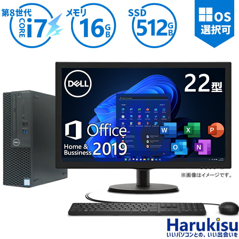 【★最大100%ポイント】【22型液晶セット】【Microsoft Office 2019 H&B 付き】Dell OptiPlex 3060 SFF/第8世代 Core i7/メモリ:16GB/SSD:512GB/USB 3.1/WIFI/DVD/HDMI/DisplayPort/Office/Windows11/中古パソコン デスクトップPC