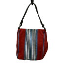 【中古】DELLE COSE(デレコーゼ) ハンドバッグ ミニバッグ/ストライプ レッド×ライトブルー×マルチ レザー