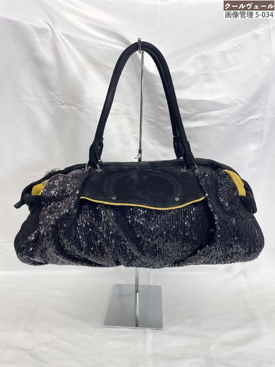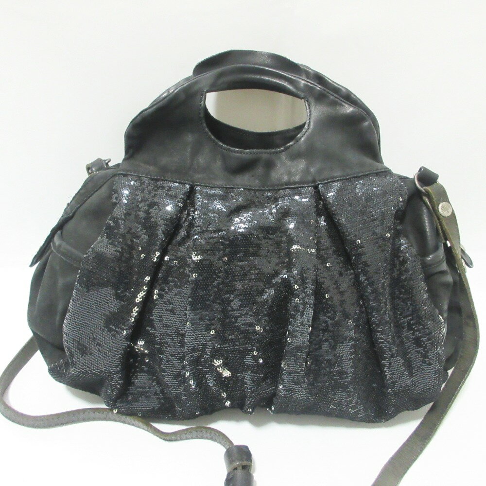 【中古】 良品 delle cose デレコーゼ レザー スパンコール 2WAY ハンドバッグ ショルダーバッグ ブラック レディース Luxs ブランド古着のリュクス