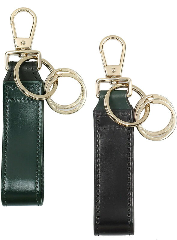 Paul Smith ポールスミスカラビナフック付き3連キーリングゴートバンレザーループストラップキーホルダー ブラック ダークグリーンシルバー PENDANT PLATE KEYRING 490DGN990