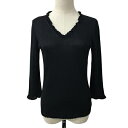 【中古】ディグレース DGRACE セーター ニット プルオーバー Vネック ラメ フリル 薄手 無地 七分袖 黒 ブラック レディース 【ベクトル 古着】 250410