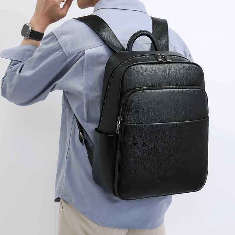 リュック メンズ 高級感 本牛革 レザー バックパック 大容量 通勤用 旅行用 ビジネス 15インチPC収納 A4サイズ対応 耐久性 丈夫 ブラック