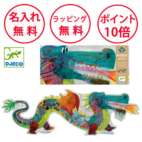 ジェコ ジャイアントパズル レオン ザ ドラゴン 58ピース ジグソーパズル 幼児 パズル 知育玩具 4歳 誕生日プレゼント 男の子 女の子 ドラゴンパズル 恐竜パズル ダイナソー 竜 龍 DJECO 無料 名入れ DJ07170