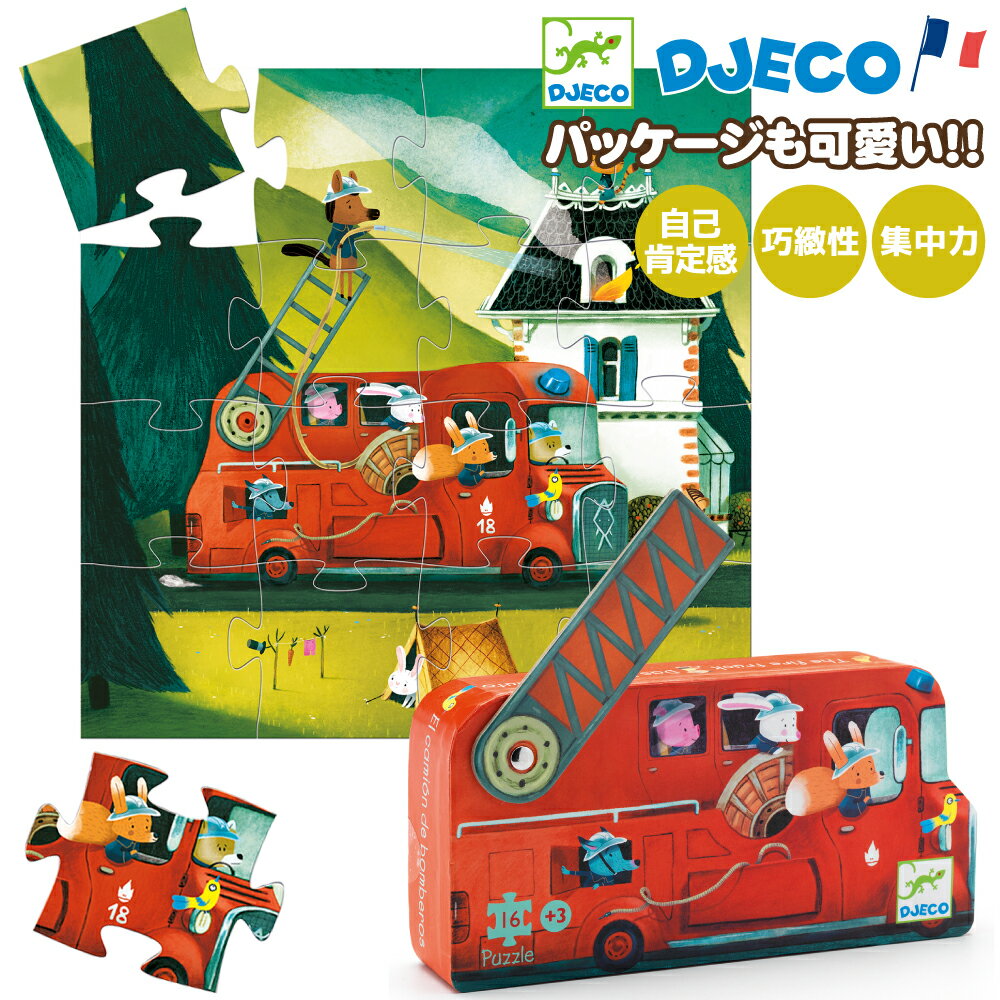 【クーポン配布中】クリスマス 子供向けパズル 16ピース ジグソーパズル 子供用 幼児 知育パズル 3歳 4歳 乗り物 消防車 プレゼント 知育玩具 男の子 女の子 誕生日 かわいい インテリア DJECO ジェコ シルエットパズルファイヤートラック
