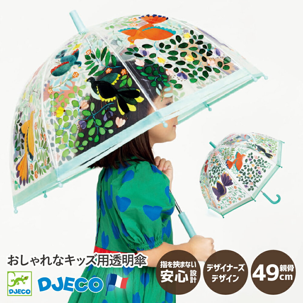 【クーポン配布中】クリスマス DJECO ジェコ アンブレラ フラワー&バード 子ども用傘 透明 かわいい 北欧デザイン 4歳 5歳 小学生 キッズ 花 鳥 雨具 直径68cm DD04804