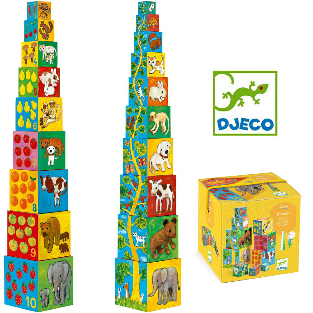 DJECO ジェコ 10マイフレンドブロックス 積み上げ スタッキング 10ブロックス 知育玩具 紙の積み木 動物 1から10 数字 入れ子