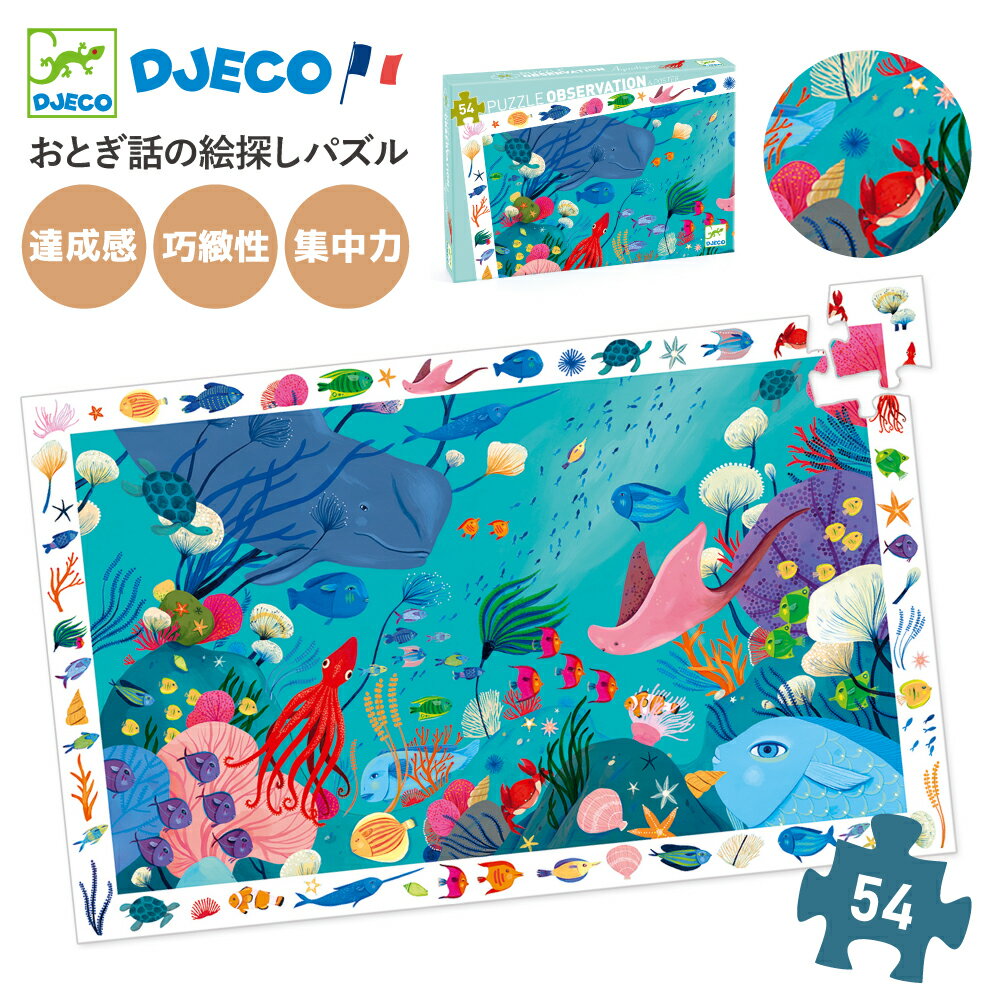 【クーポン配布中】クリスマス ジグソーパズル 海の生き物 絵探し ピース 3歳 4歳 5歳 魚 パズル 水族館 アイテム探し絵 知育玩具 女の子 男の子 プレゼント 探し絵 DJECO ジェコ オブザベーションパズル アクアティック 54PCS