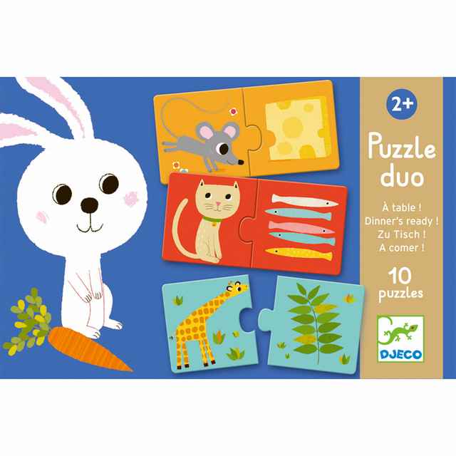 パズル 2ピース 2歳 幼児 子供 ジグソーパズル パズルデュオ ディナーズレディ 赤ちゃん 出産祝い 1歳半 誕生日 プレゼント 男の子 女の子 食べ物 食事 動物 フランス DJECO ジェコ 知育玩具 知育パズル 2歳児