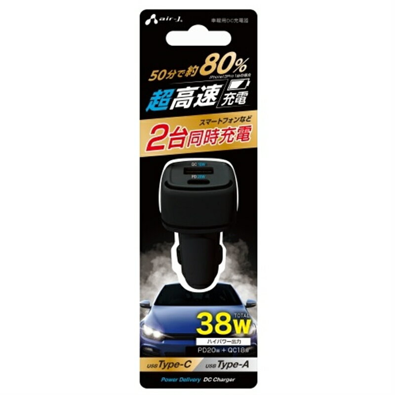 エアージェイ ハイパワー車載用DC 充電器 DKJ-PD2 BK ブラック