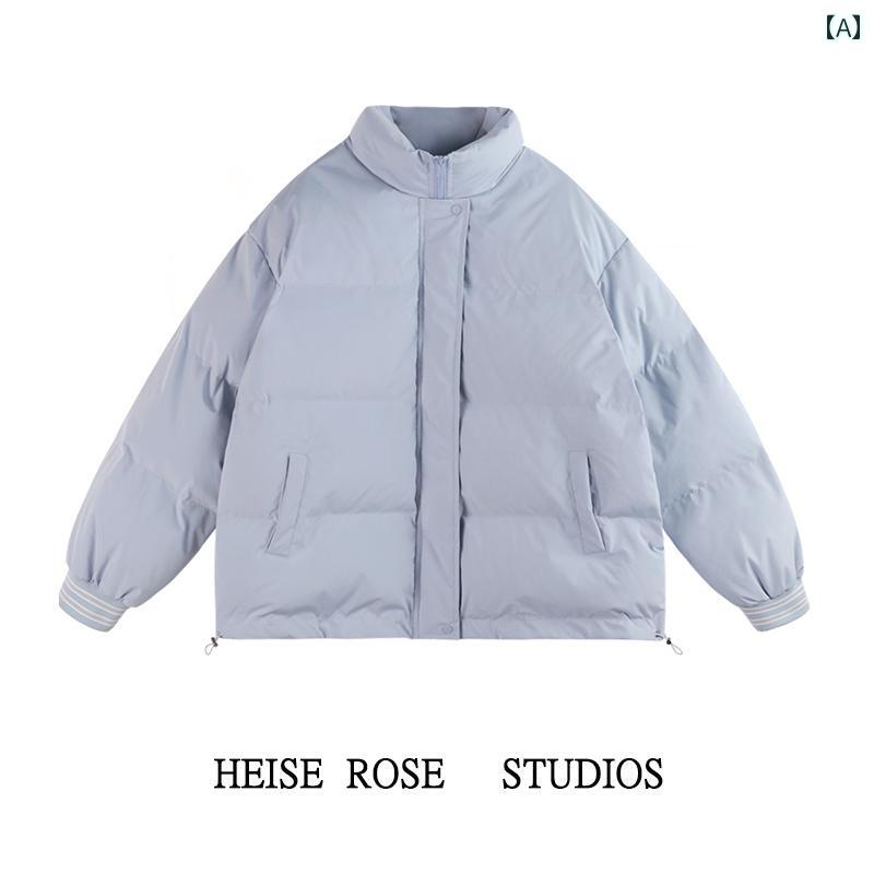 レディース 冬 女性用 青い ショート コットンコート 小柄 ゆったり 厚手 スタンドカラー ブレッド コート
