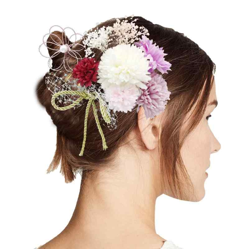 和装 髪飾り 9点セット 花 ドライフラワー リボン ヘアピン uピン 和風 七五三 成人式 卒業式 和装 浴衣 着物 振袖 袴 髪飾り ヘアアクセサリー (9点セット パープル)