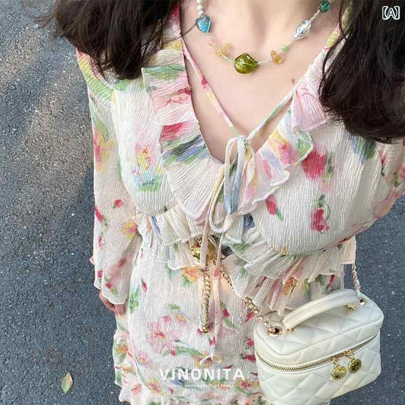 エレガント カラードレス ワンピース ヴィノ ニタの 高級 ホリデー ヘビー フリル ウエスト 長袖 花柄 ドレス