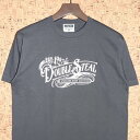 M [袖丈:19肩幅:47胸囲:104着丈:68] L [袖丈:21肩幅:50胸囲:110着丈:72] XL[袖丈:23肩幅:52胸囲:116着丈:74] フロントにヴィンテージテイストなグラフィックがプリントされた、洒落た無骨さを演出する一枚。ボディーは5.6ozの度詰め天竺生地が使用されています。 (コメントはDOUBLE STEALのカタログより抜粋)