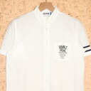 M [袖丈:24肩幅:45胸囲:108着丈:73] L [袖丈:26肩幅:48胸囲:111着丈:75] XL[袖丈:27肩幅:50胸囲:118着丈:78] 細めのテープを袖に二本と下前に施しました。左胸のポケットには文字プリントが入っており、左裾側面にはピスネームが縫い付けてあります。着心地の良いブロード生地を使用しています。 (コメントはDOUBLE STEALのカタログより抜粋)