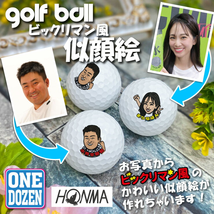 写真からビックリマン風 似顔絵が出来る! HONMA D1 ゴルフボール(12個/1Dozen) プレゼントにも最適♪ 名入れ プリント 写真 イラスト 画像 マイボール GOLF BALL ORIGINAL PRESENT ホンマ ギフトBOXも