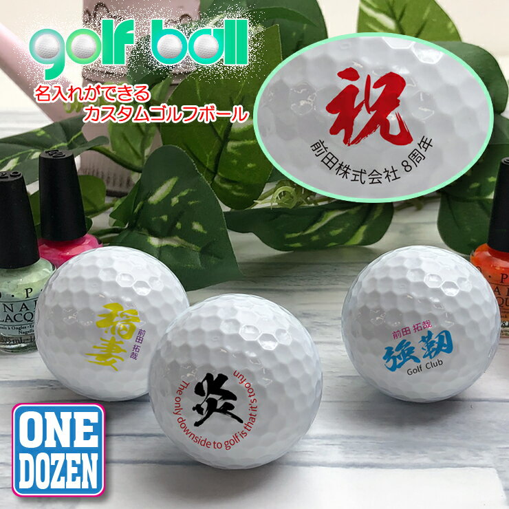 ネーム入り オリジナル ゴルフボール 自分だけの特別なmyボール!!12個(1ダース)セットです。 記念品や、プレゼント、ノベルティ、卒業記念品など、イベント行事など用途は様々♪ ※名入れ文字は必ず備考欄にお書き下さい。 大文字・小文字も指定いただいた通り印刷します。 ※納品は元々のメーカーパッケージとなります。 ※UVプリントのため、公式戦ではご使用いただけませんので、ご注意ください。