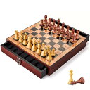 チェスセット GSE Games & Sports Expert 10" Magnetic Chess Set, Wooden Chess Board Game Set with Drawers, Classic Portable Travel Board Game for Kids & Adults 【並行輸入品】