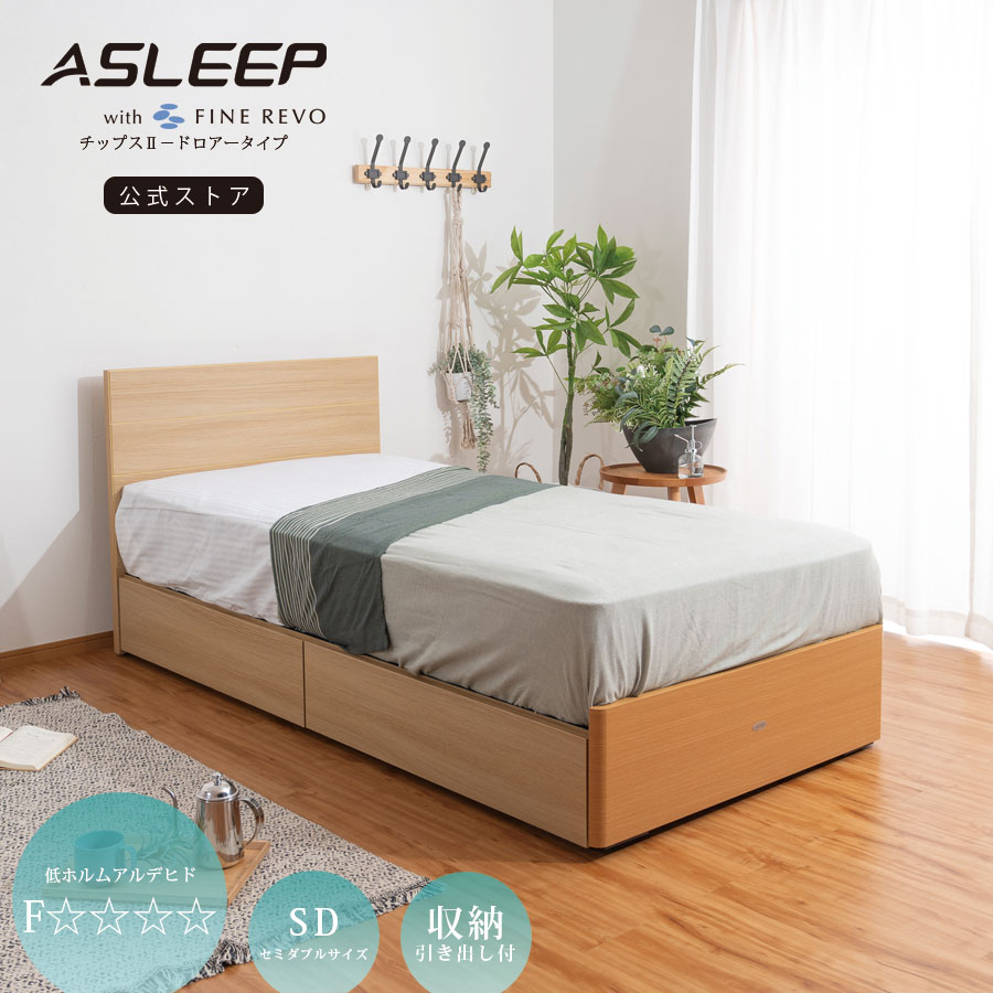 【公式】ASLEEP(アスリープ) ベッドフレーム チップス2 セミダブル 引き出し付 収納付 F☆☆☆☆ 高級 おしゃれ シンプル 収納 ヘッドボード 低ホルムアルデヒド SD フラットダークブラウン ナチュラル