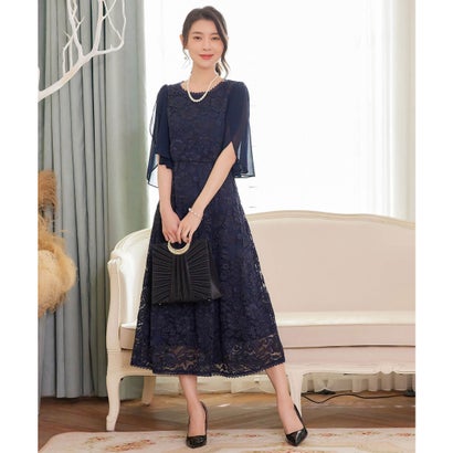 可憐なレース素材と薄手のシフォン素材のドッキングでセンシュアルな透け感を誘うウエスト切り替えAラインワンピースドレス。エレガントで抜け感のある花柄レースや、フレアラインの裾が女性らしさを惹きたてる一枚です。■Lining裏地付きなので透けを気にせず、1枚で着用いただけます。身頃の裏地は胸元までしかないので、襟ぐりや肩口から袖にかけて、レースの透け感を活かした上品な肌見せが叶います。■Lace sleeve袖は同色レースの七分袖です。適度な抜け感を残しながら、気になる二の腕のラインをぼかしてくれます。■Easy on/offファスナーを使用しないバックボタンデザインで着脱は簡単。取り外し可能なリボンベルトで隠れたウエストシェイプ部分はゴム入りなので、長時間の着用や飲食を伴う場面でもラクに着ることができます。【サイズ】-102:バスト87cm|ウエスト66cm|肩幅37cm|袖丈43cm|裾幅222cm|着丈120cm-103:バスト91cm|ウエスト70cm|肩幅38cm|袖丈44cm|裾幅228cm|着丈122.5cm-104:バスト95cm|ウエスト74cm|肩幅39cm|袖丈45cm|裾幅234cm|着丈125cm-105:バスト99cm|ウエスト78cm|肩幅40cm|袖丈46cm|裾幅240cm|着丈127.5cm-106: バスト103cm|ウエスト82cm|肩幅41cm|袖丈47cm|裾幅246cm|着丈130cm★使えるシーンパーティー・結婚式・二次会・披露宴・食事会セレモニー・お呼ばれ・フォーマル・冠婚葬祭入園式・入学式・卒園式・卒業式・成人式同窓会・女子会・2次会・謝恩会・オケージョン食事会・演奏会・発表会・記念日・お使いのモニターや端末により、質感・色合いが実際の商品と異なって見える場合がございます。別カラーはこちら! パープル(ラベンダー) ブルー(ネイビー) グリーン(カーキ) ブラック グレー(チャコール) ブルー(コバルトブルー) ベージュ