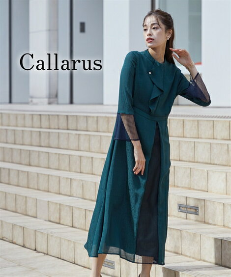 ドレス ワンピース レディース 結婚式 パーティー オケージョン Callarus Front Deign Lace×Jacquard Onepiece Dress グリーン系/黒系 M/L ニッセン nissen