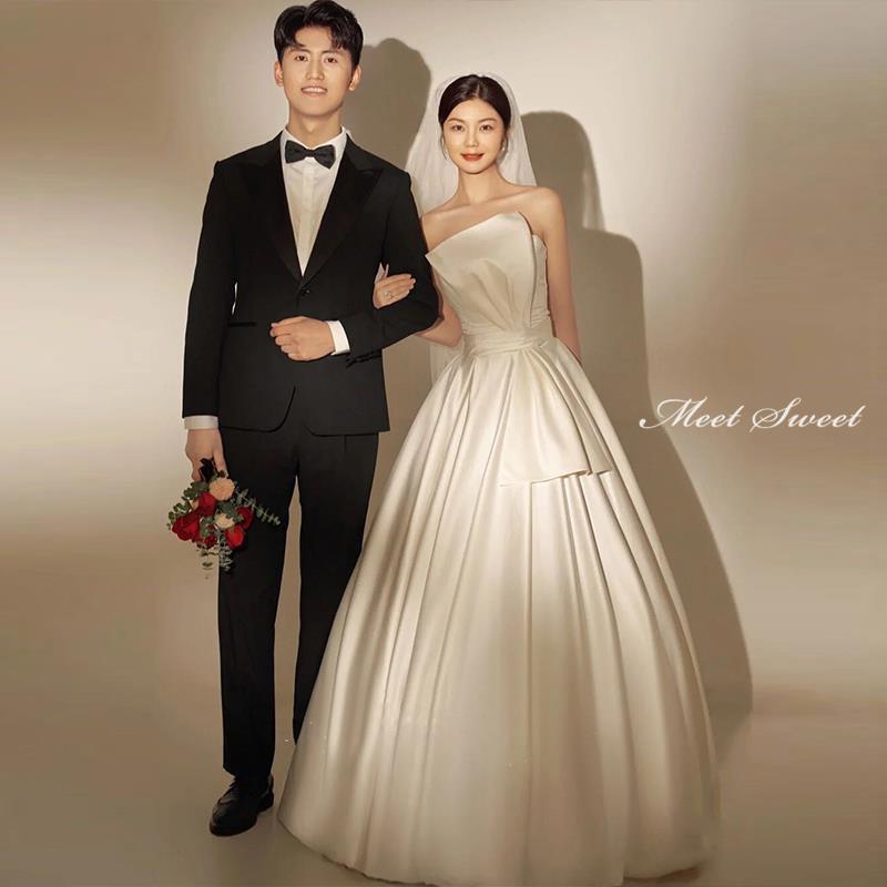 【P2倍+MAX2000円クーポン 12/11 1:59まで】ウェディングドレス ウエディングドレス 二次会 2.5次会 結婚式 披露宴 前撮り 後撮り ブライダル ロングドレス 花嫁 Aラインドレス サテン ビスチェ ベアトップ 海外挙式 フォトウェディング オフホワイト wedding dress