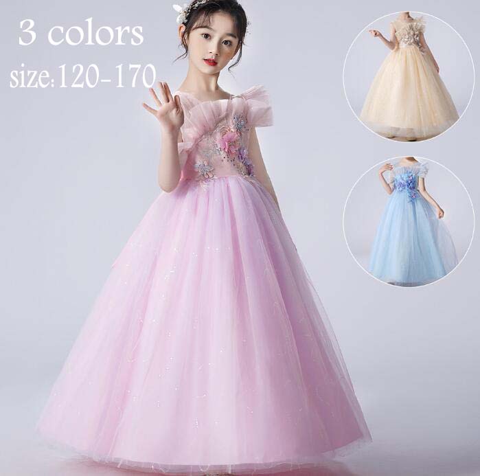 子供ドレス ドレス キッズ ロングワンピース 高級dress ピアノ発表会 ベージュ 子供ドレス 誕生日 パーティー ベビードレス ショートドレス 刺繍 子どもドレス フォーマル 七五三 お呼ばれ イベント ステージ衣装 結婚式 演奏会 000 000 020 030 040 050 060