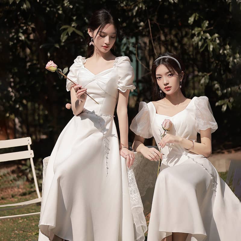 ウェディングドレス レディース wedding dress ウエディングドレス ドレス 花嫁ドレス 半袖 スレンダーライン 二次会ドレス ワンピース ロング 白 演奏会ドレス花嫁 前撮り 披露宴 結婚式 海外挙式