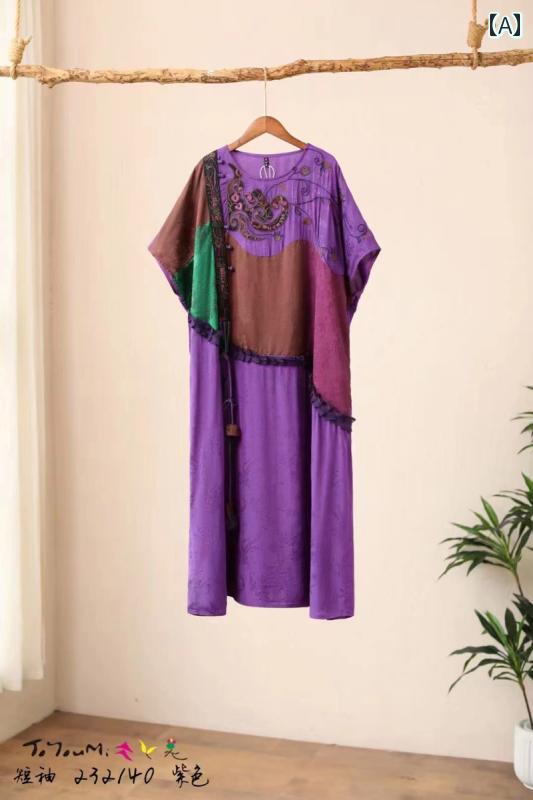 レディース ファッション ジャカード テンセル 刺繍 レトロ エスニック レーヨン ドレス ローブ