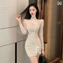 レディース ファッション レトロ 優しい 中国 ガール スリミング チャイナドレス ニット ボトム ドレス