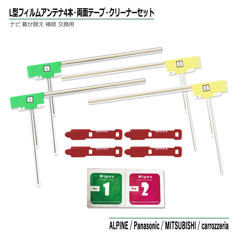 カロッツェリア GEX-909DTV L型 フィルムアンテナ 4本セット 両面テープ 4枚 クリーナー セット 地デジ フルセグ ワンセグ 高感度 汎用 補修 交換 アンテナ