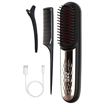 【中古】【未使用】ポータブルミニコードレスホットコーム、コードレスストレートヘアアイロン、3レベル充電式ストレートヘアアイロンブラシ、トラベルサイズUSB充
