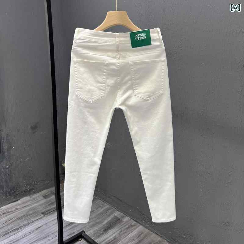 デニムパンツ メンズ ジーンズ ジーパン スキニー 夏 薄手 カジュアル ストレート ストレッチ性 シンプル ジッパー ホワイト ブラック