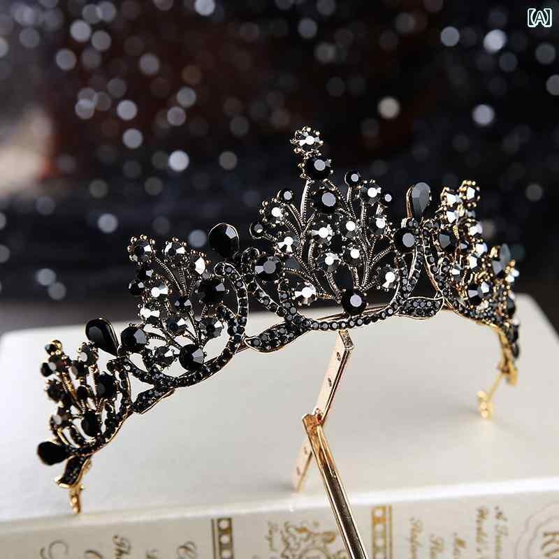 ブライダル アクセサリー 小物 ウェディング 結婚式 パーティー 婦 花嫁 舞台 小道具 コスプレ バロック レトロ ブラック クラウン ティアラ ドレス 誕生日 クイーン クラウン