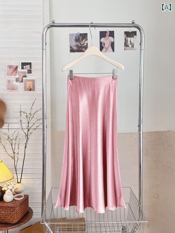 スカート レディース 韓国風 魚尾スカート ロング丈 ハイウエスト きれいめ フェミニン 春夏 ポリエステル ピンク系