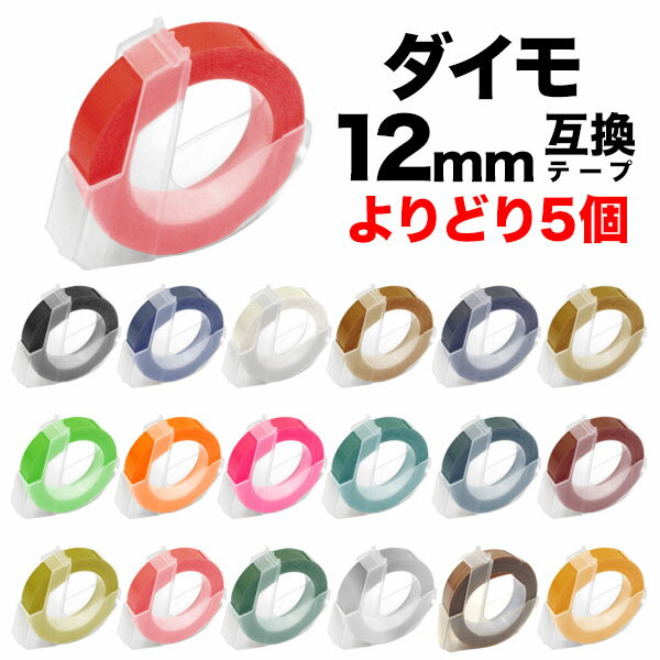 ダイモ用 互換 テープ 12mm フリーチョイス(自由選択) 全19色 色が選べる5個セット