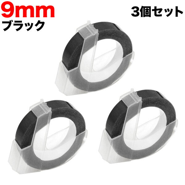 YUUダイモテープライター9mmブラックdymo3Dテープ黒地白字DM0903Bdymoテープライター互換汎用グロッシーテープDM20008DM1595BUDM20008CPエンボステープ3個入り3m長さつやあり