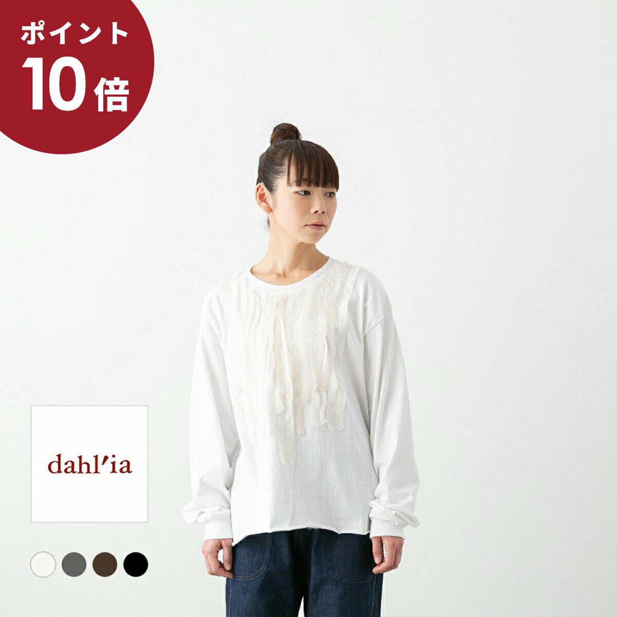 (P10倍+500円OFFクーポン!)(メール便OK)dahl'ia ダリア フリル リメイク 長袖 カットソー 4色 HD-63