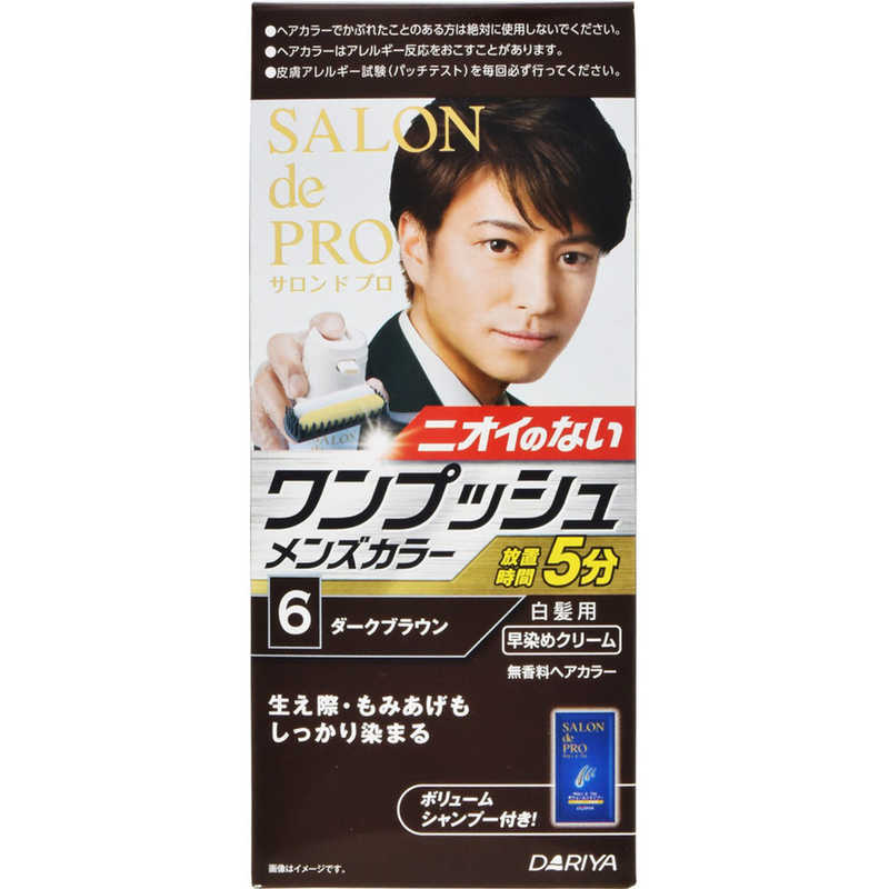【商品解説】ニオイのない快適な使い心地のヘアカラー。放置時間5分の簡単スピーディタイプ。「はり・コシ成分」配合でふんわり仕上げます。【スペック】●型式:(サロンドPワンプツシユメンズ6)●JANコード:4904651182824【注意事項・特記事項】※パッケージリニューアルやキャンペーン等で掲載画像とは異なる場合があります※開封後の返品や商品交換はお受けできませんこの商品は宅配便でお届けする商品です出荷可能日から最短日時でお届けします。※出荷完了次第メールをお送りします。配送サービス提供エリアを調べることができます「エリア検索」をクリックして、表示された画面にお届け先の郵便番号7桁を入力してください。ご購入可能エリア検索お買い上げ合計3,980円以上で送料無料となります。※3,980円未満の場合は、一律550円(税込)となります。●出荷可能日から最短日時でお届けします。(日時指定は出来ません。) ※お届け時に不在だった場合は、「ご不在連絡票」が投函されます。 「ご不在連絡票」に記載された宅配業者の連絡先へ、再配達のご依頼をお願いいたします。●お届けは玄関先までとなります。●宅配便でお届けする商品をご購入の場合、不用品リサイクル回収はお受けしておりません。●全て揃い次第の出荷となりますので、2種類以上、または2個以上でのご注文の場合、出荷が遅れる場合があります。詳細はこちら■商品のお届けについて商品の到着日については、出荷完了メール内のリンク(宅配業者お荷物お問い合わせサービス)にてご確認ください。詳しいお届け目安を確認する1度の注文で複数の配送先にお届けすることは出来ません。※注文時に「複数の送付先に送る」で2箇所以上への配送先を設定した場合、すべてキャンセルとさせていただきます。