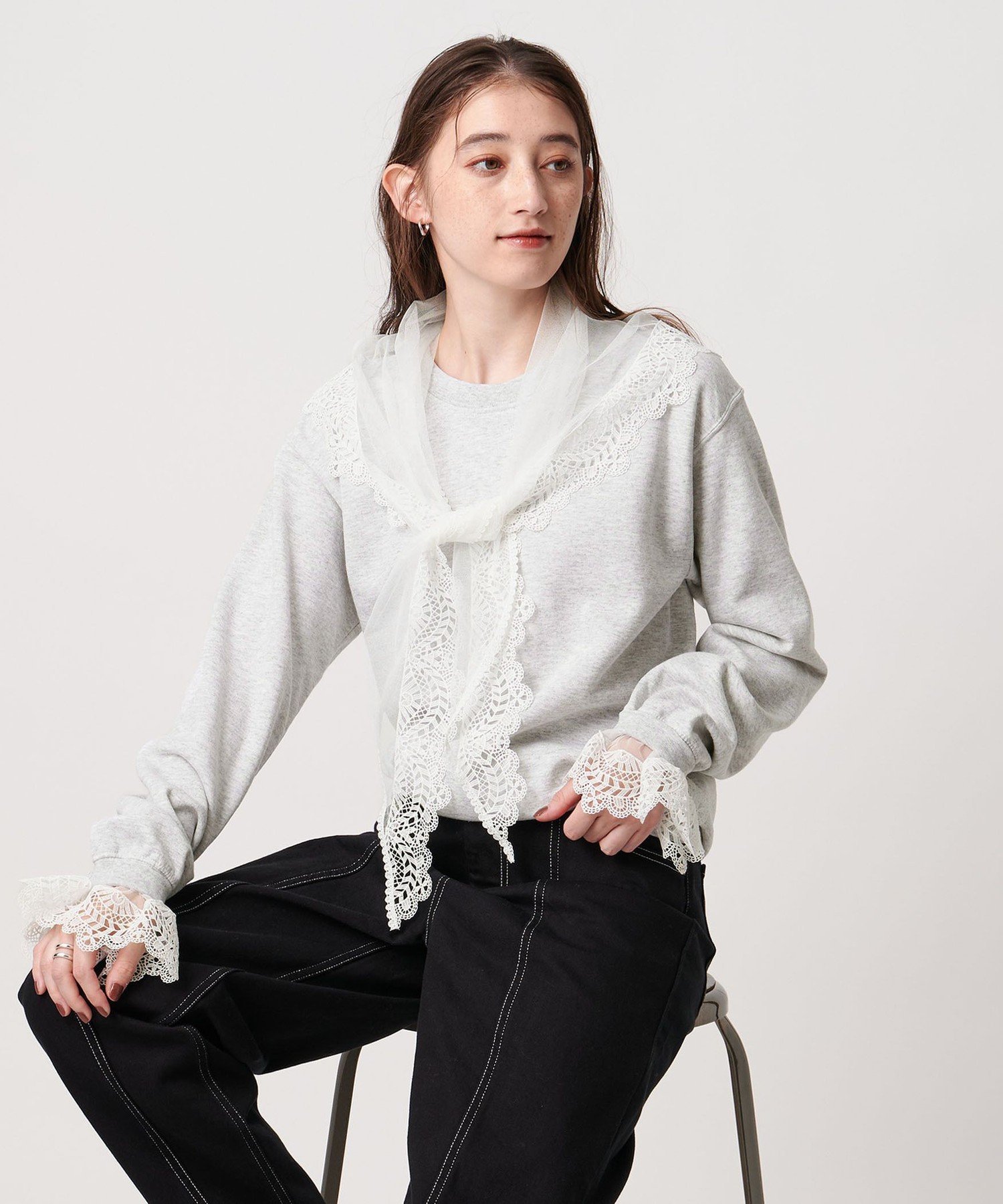 UNITED ARROWS 【別注】<dahl'ia>レーススカーフ スウェット ユナイテッドアローズ トップス スウェット・トレーナー グレー ブラック【送料無料】