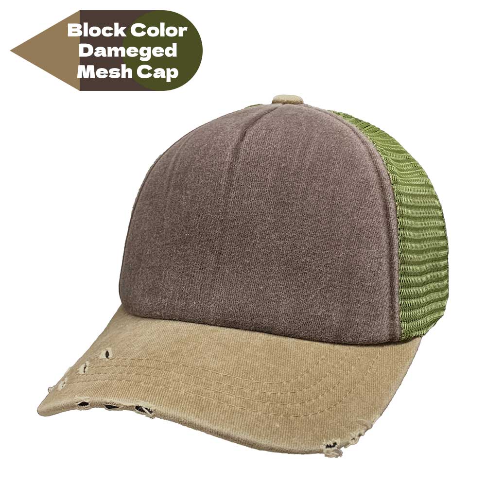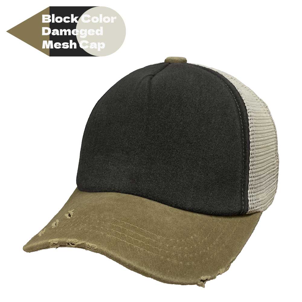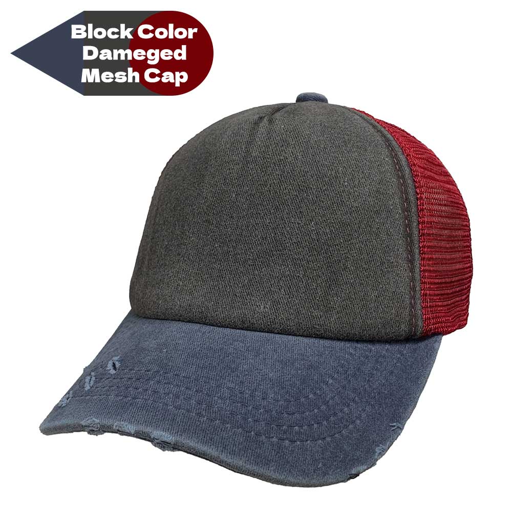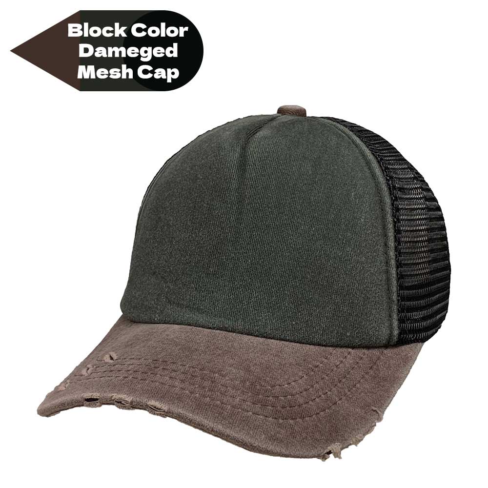 【ネコポス対応】ブロックカラー ダメージ加工 スポンジ メッシュ キャップ ★ block color dameged mesh cap メンズ レディース 帽子 カーブ バイザー フリー 日除け 熱中症 屋外 アウトドア ベースボール プロファイル ユニセックス 普段使い カジュアル 日常 トラッカー
