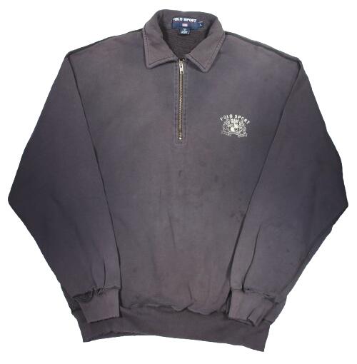 USED!!! POLO SPORT / DAMEGED HALF-ZIP SWEAT (90'S) / washed black サイズ L ポロ・スポーツ ハーフジップスウェット