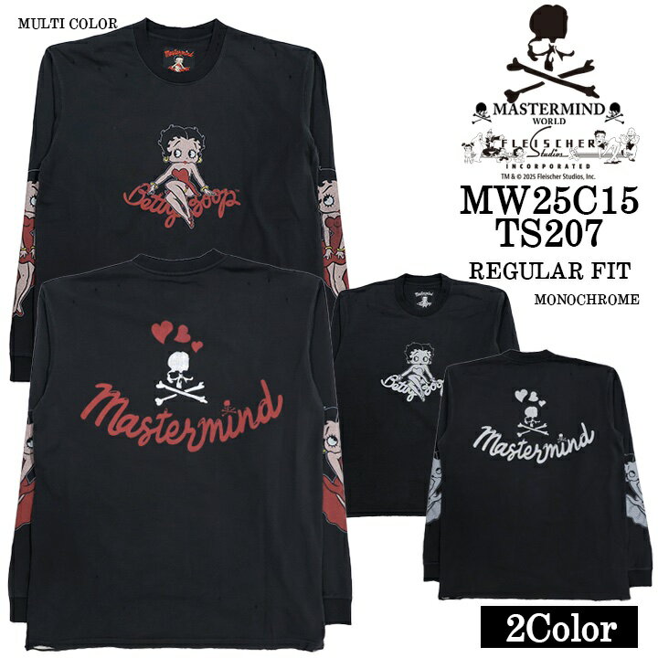 MASTERMIND WORLD BETTY BOOP L/S TEE DAMEGED [BOXY FIT] マスターマインド ワールド ベティー コラボ ダメージ加工 天竺 長袖Tシャツ mw25c15-ts208
