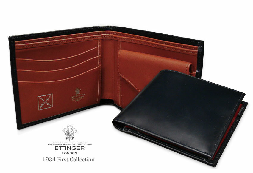 [ETTINGER社公認正規販売店]ETTINGER / エッティンガー ● 1934 ファーストコレクション BILLFOLD●002カード&コインパース141JR メンズ/レザー/二つ折り財布/コインケース/ カード入れ/ネイビー×ダークタン