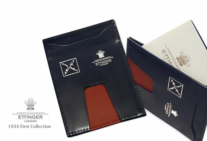 [ETTINGER社公認正規販売店]ETTINGER / エッティンガー ● 1934 ファーストコレクション カードケース●002( 限定品 ) 143JR NAVY×DARK TAN メンズ/レザー/カード入れ/名刺入れ/ 別注/シルバーロゴ/ネイビー×ダークタン
