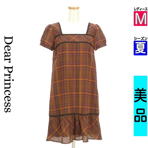 \先着15名様★全品39%OFFクーポン/ ディアプリンセス Dear Princess ワンピース チュニック レディース 夏 半袖 ブラウン M チェック柄シフォンワンピース 【中古】【古着】【大幅値下】ブラックフライデー