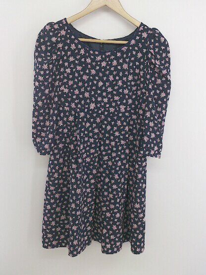 ◇ Dear Princess ディアプリンセス 総柄 半袖 ミニ ワンピース ネイビー レディース E 【中古】