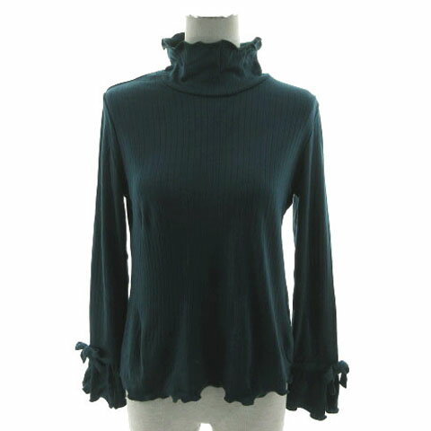 【中古】未使用品 ディアプリンセス Dear princess ブラウス フリルハイネック 長袖 キャンディースリーブ リボン 日本製 シルク混 ストライプ柄 グリーン系 青緑 38 レディース 【ベクトル 古着】 250203