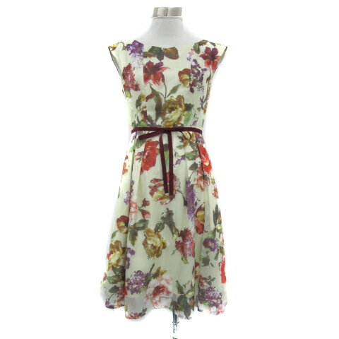 【中古】ディアプリンセス Dear princess ワンピース ひざ丈 ノースリーブ ラウンドネック 花柄 オーガンジー リボン マルチカラー アイボリー /YS17 レディース 【ベクトル 古着】 250327