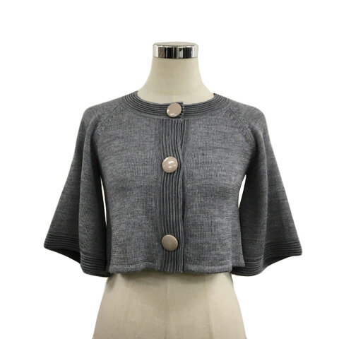 【中古】ディアプリンセス Dear princess カーディガン ニット クルーネック ショート クロップド 無地 フレアスリーブ 五分袖 グレー レディース 【ベクトル 古着】 250127